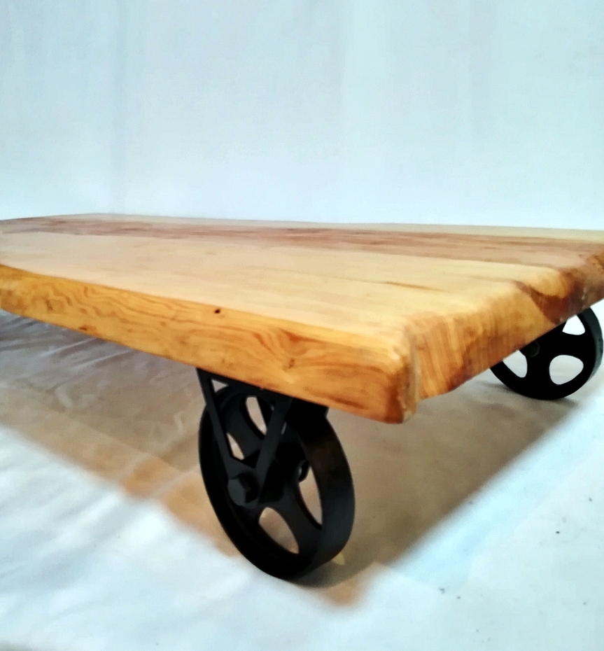 Döküm Tekerli Çam Kütük Sehpa - 125 cm Naturel - DTS01